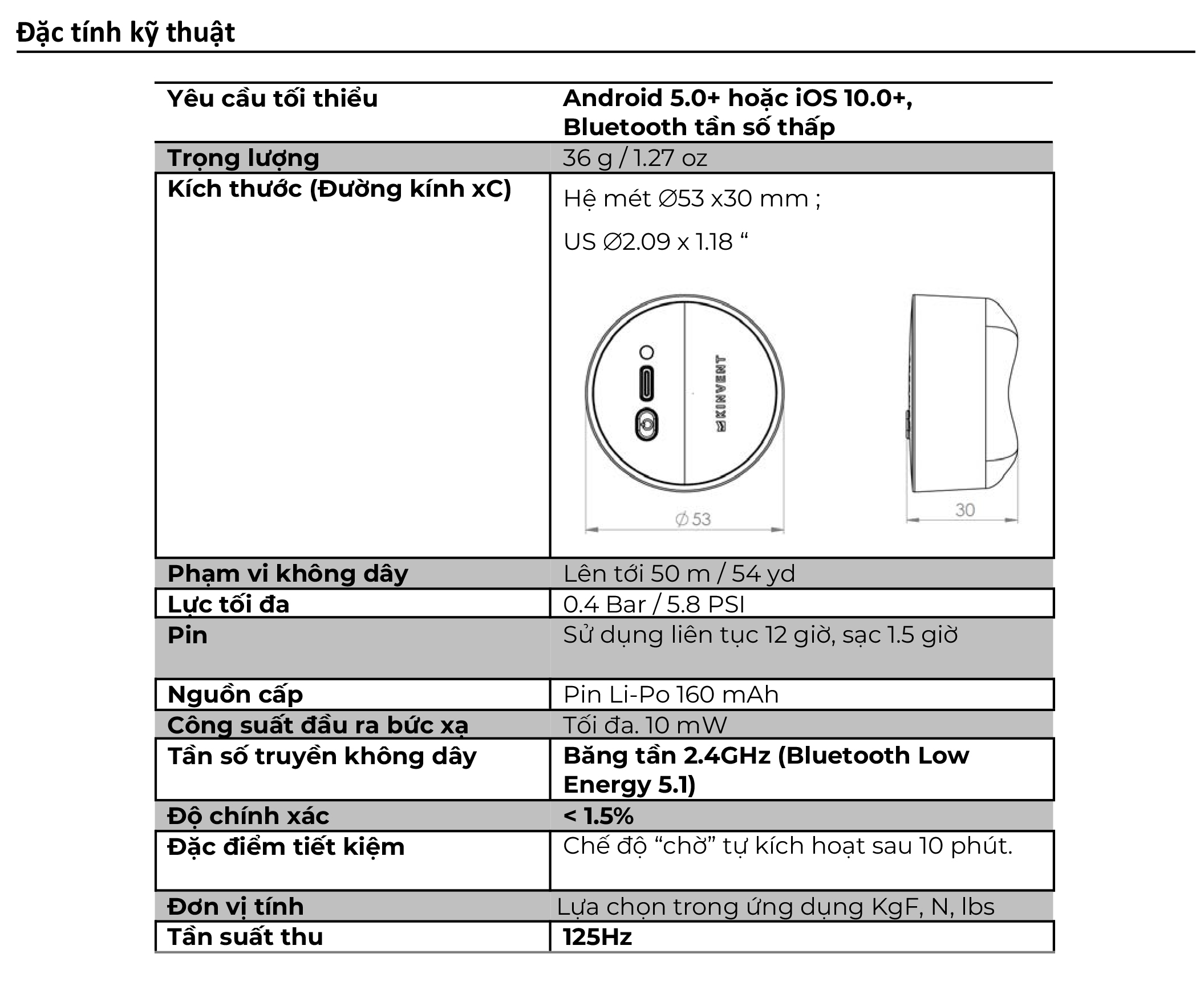 7. Đặc tính kỹ thuật