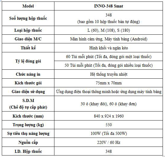 THÔNG SỐ KỸ THUẬT CỦA INNO-348 Smat